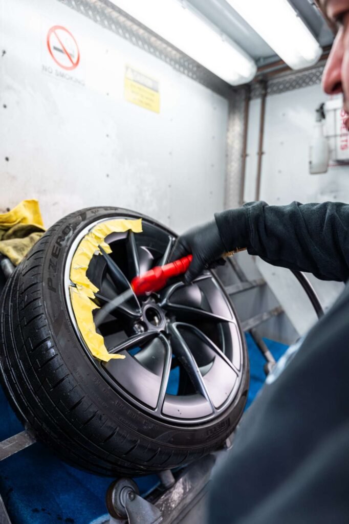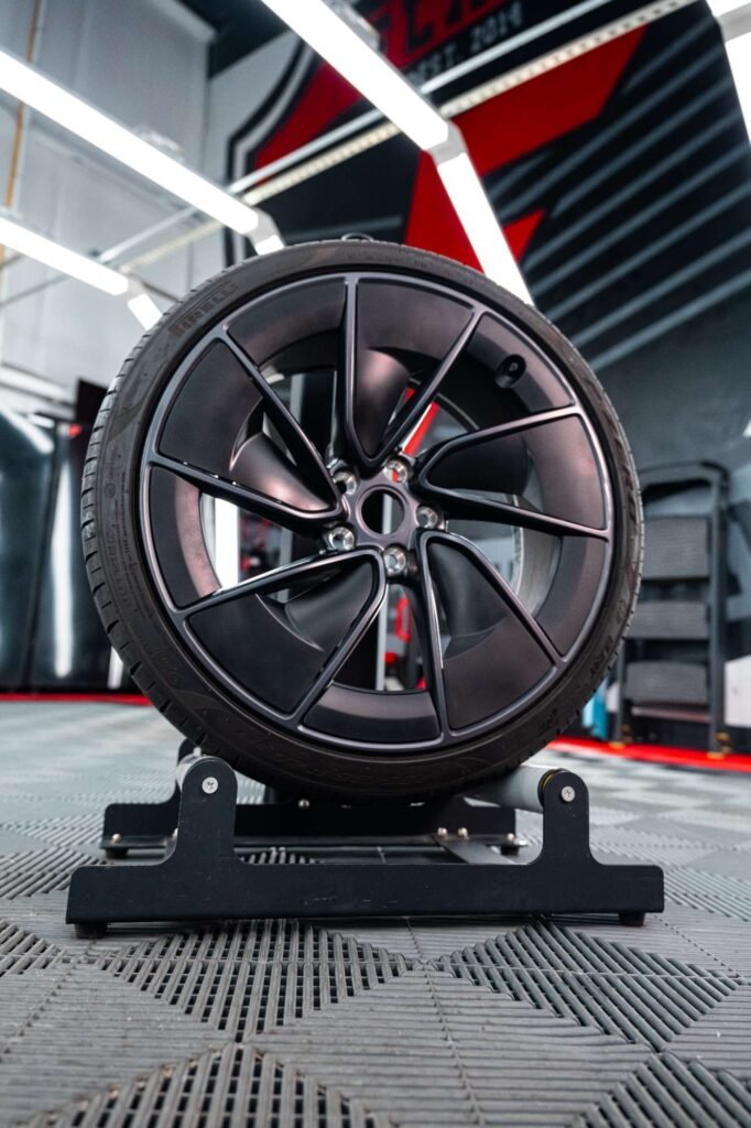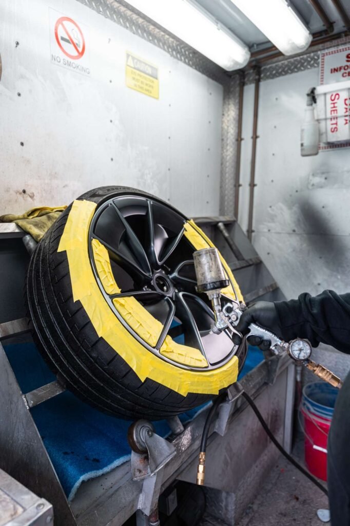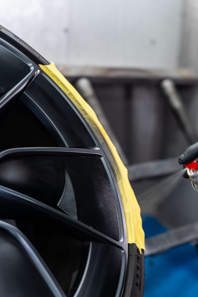 A: Wheel painting involves applying a liquid coat and is ideal for custom colors, detailed finishes and multi-tone designs. Powder coating uses a dry powder that is heat-cured onto the surface, creating a thicker and more durable finish that resists chips, scratches and corrosion. Both options are available at Flash Mobile Detailing, and our team can help you decide which method best suits your goals and budget.