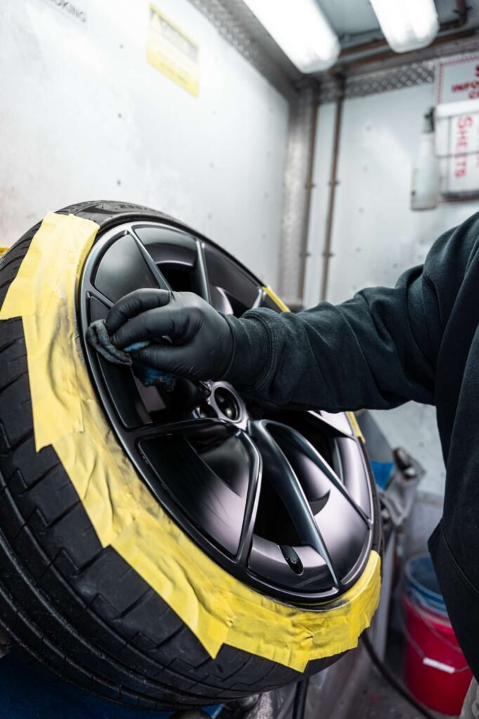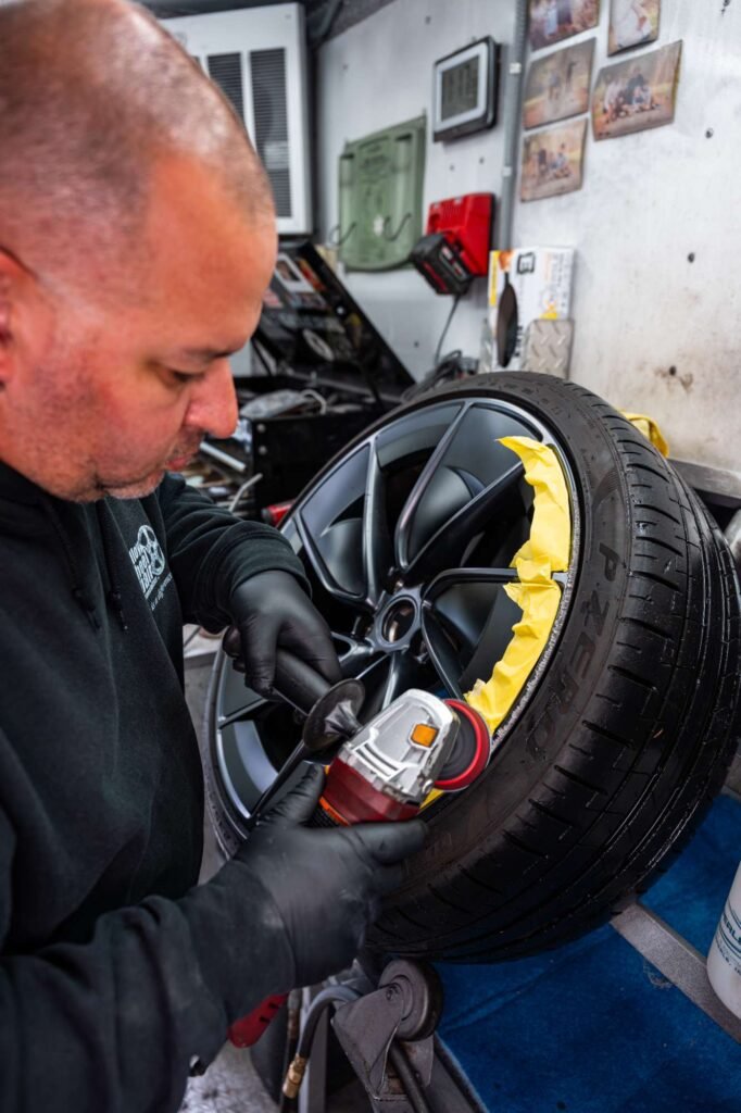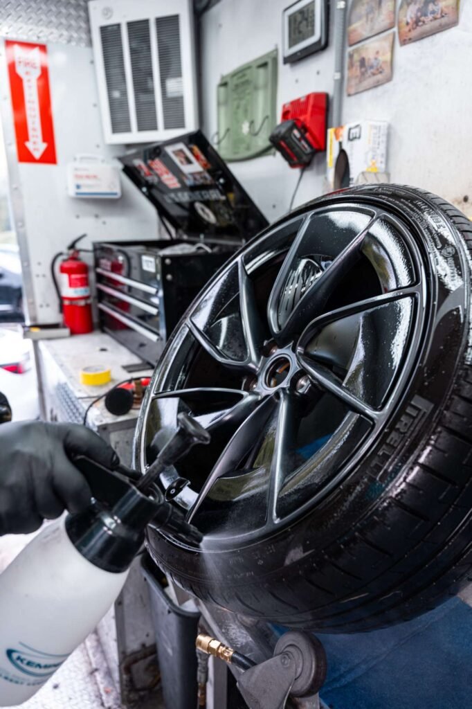 A: Most standard wheel repairs and single-color jobs can be completed within a day. Custom painting and powder coating may take longer depending on the complexity of the finish, the number of wheels being serviced and the level of prep work required. Contact Flash Mobile Detailing for a time estimate based on your specific needs.